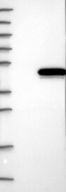 A Western blot analysis is performed on a panel of human tissues and cell lines to evaluate antibody specificity. For antibodies with unreliable result a revalidation using an over-expression lysate is performed.