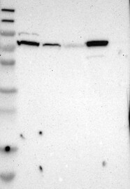 A Western blot analysis is performed on a panel of human tissues and cell lines to evaluate antibody specificity. For antibodies with unreliable result a revalidation using an over-expression lysate is performed.