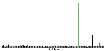 At the top of the view, the position of the antigen (identified by the corresponding HPA identifier) is shown as a green bar. A yellow triangle on the bar indicates a <100% sequence identity to the protein target.