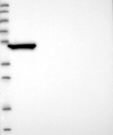 A Western blot analysis is performed on a panel of human tissues and cell lines to evaluate antibody specificity. For antibodies with unreliable result a revalidation using an over-expression lysate is performed.
