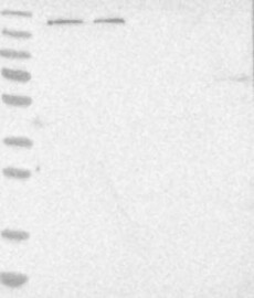 A Western blot analysis is performed on a panel of human tissues and cell lines to evaluate antibody specificity. For antibodies with unreliable result a revalidation using an over-expression lysate is performed.