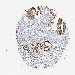 Antibody staining in the annotated cell types in the current human tissue is reported as not detected, low, medium, or high, based on conventional immunohistochemistry profiling in selected tissues. This score is based on the combination of the staining intensity and fraction of stained cells.