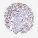 Antibody staining in the annotated cell types in the current human tissue is reported as not detected, low, medium, or high, based on conventional immunohistochemistry profiling in selected tissues. This score is based on the combination of the staining intensity and fraction of stained cells.