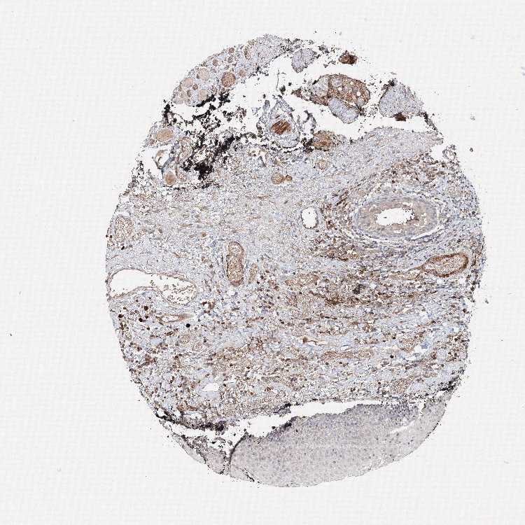 Antibody staining in the annotated cell types in the current human tissue is reported as not detected, low, medium, or high, based on conventional immunohistochemistry profiling in selected tissues. This score is based on the combination of the staining intensity and fraction of stained cells.