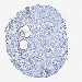 Antibody staining in the annotated cell types in the current human tissue is reported as not detected, low, medium, or high, based on conventional immunohistochemistry profiling in selected tissues. This score is based on the combination of the staining intensity and fraction of stained cells.