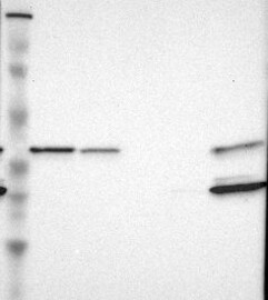 A Western blot analysis is performed on a panel of human tissues and cell lines to evaluate antibody specificity. For antibodies with unreliable result a revalidation using an over-expression lysate is performed.