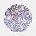 Antibody staining in the annotated cell types in the current human tissue is reported as not detected, low, medium, or high, based on conventional immunohistochemistry profiling in selected tissues. This score is based on the combination of the staining intensity and fraction of stained cells.