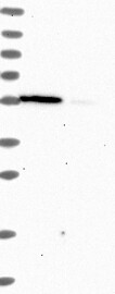 A Western blot analysis is performed on a panel of human tissues and cell lines to evaluate antibody specificity. For antibodies with unreliable result a revalidation using an over-expression lysate is performed.