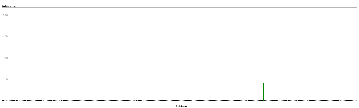 At the top of the view, the position of the antigen (identified by the corresponding HPA identifier) is shown as a green bar. A yellow triangle on the bar indicates a <100% sequence identity to the protein target.