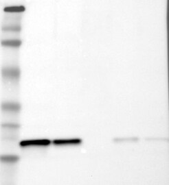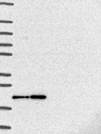 A Western blot analysis is performed on a panel of human tissues and cell lines to evaluate antibody specificity. For antibodies with unreliable result a revalidation using an over-expression lysate is performed.