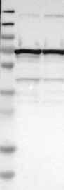 A Western blot analysis is performed on a panel of human tissues and cell lines to evaluate antibody specificity. For antibodies with unreliable result a revalidation using an over-expression lysate is performed.