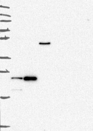 A Western blot analysis is performed on a panel of human tissues and cell lines to evaluate antibody specificity. For antibodies with unreliable result a revalidation using an over-expression lysate is performed.
