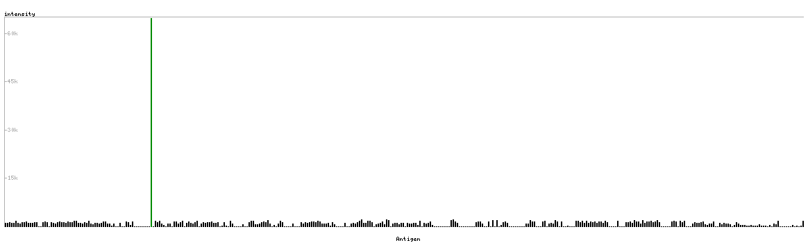 The curve in blue displays the predicted antigenicity i.e. the tendency for different regions of the protein to generate an immune response, with peak regions being predicted to be more antigenic.The curve shows average values based on a sliding window approach using an in-house propensity scale. (read more).