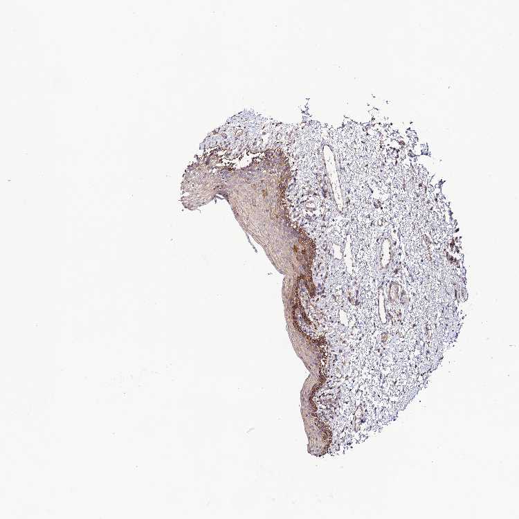 Antibody staining in the annotated cell types in the current human tissue is reported as not detected, low, medium, or high, based on conventional immunohistochemistry profiling in selected tissues. This score is based on the combination of the staining intensity and fraction of stained cells.