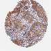 Antibody staining in the annotated cell types in the current human tissue is reported as not detected, low, medium, or high, based on conventional immunohistochemistry profiling in selected tissues. This score is based on the combination of the staining intensity and fraction of stained cells.