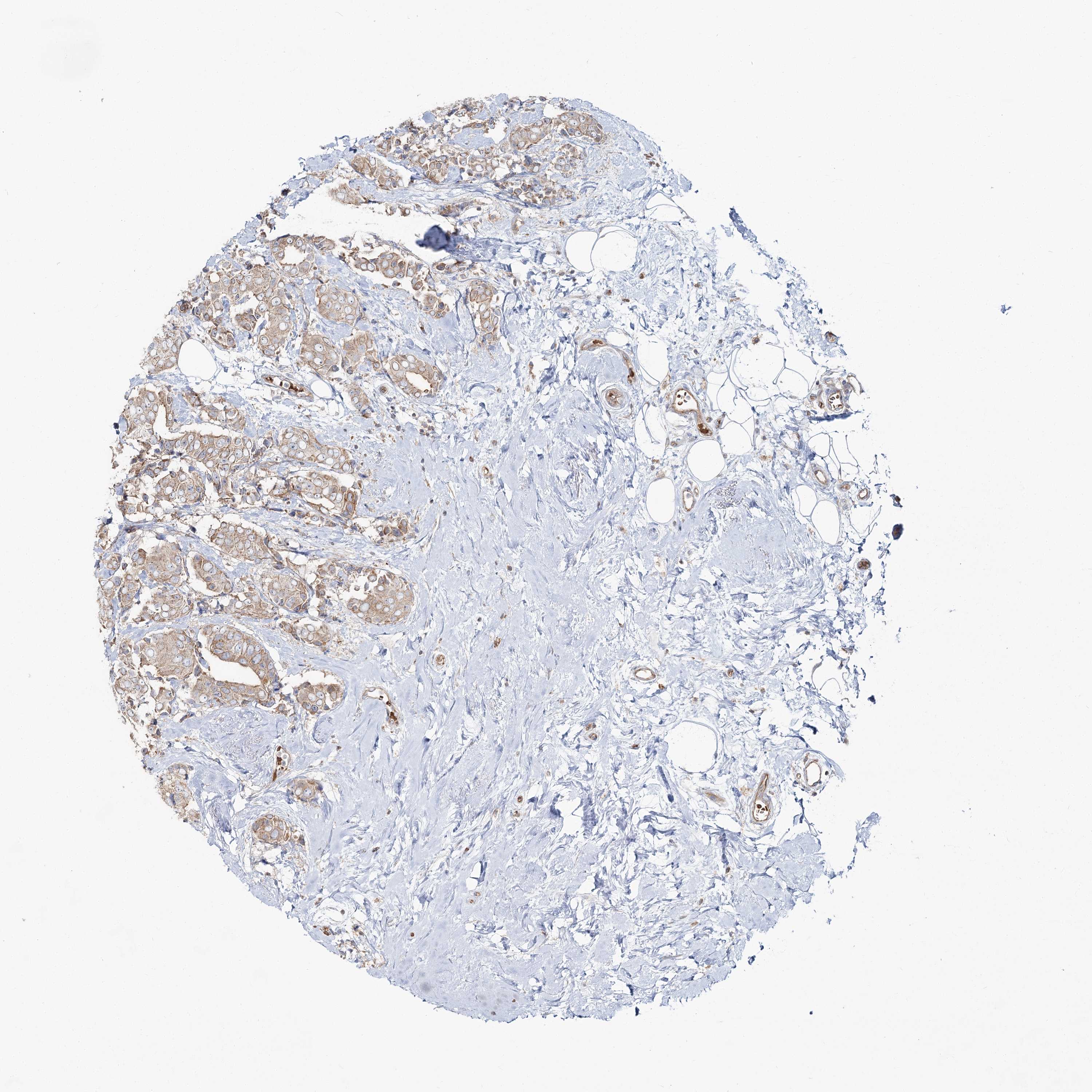 Antibody staining in the annotated cell types in the current human tissue is reported as not detected, low, medium, or high, based on conventional immunohistochemistry profiling in selected tissues. This score is based on the combination of the staining intensity and fraction of stained cells.