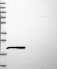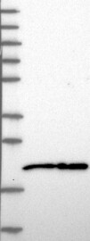 A Western blot analysis is performed on a panel of human tissues and cell lines to evaluate antibody specificity. For antibodies with unreliable result a revalidation using an over-expression lysate is performed.