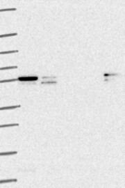A Western blot analysis is performed on a panel of human tissues and cell lines to evaluate antibody specificity. For antibodies with unreliable result a revalidation using an over-expression lysate is performed.