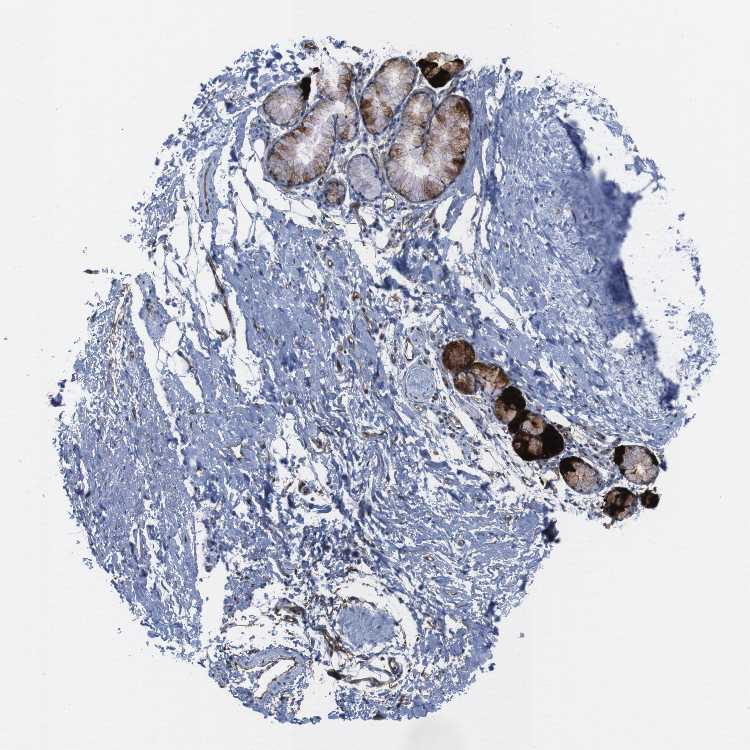 Antibody staining in the annotated cell types in the current human tissue is reported as not detected, low, medium, or high, based on conventional immunohistochemistry profiling in selected tissues. This score is based on the combination of the staining intensity and fraction of stained cells.
