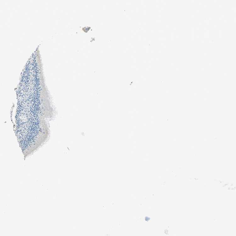 Antibody staining in the annotated cell types in the current human tissue is reported as not detected, low, medium, or high, based on conventional immunohistochemistry profiling in selected tissues. This score is based on the combination of the staining intensity and fraction of stained cells.