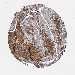 Antibody staining in the annotated cell types in the current human tissue is reported as not detected, low, medium, or high, based on conventional immunohistochemistry profiling in selected tissues. This score is based on the combination of the staining intensity and fraction of stained cells.