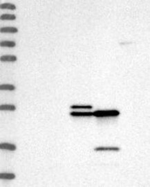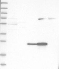 A Western blot analysis is performed on a panel of human tissues and cell lines to evaluate antibody specificity. For antibodies with unreliable result a revalidation using an over-expression lysate is performed.
