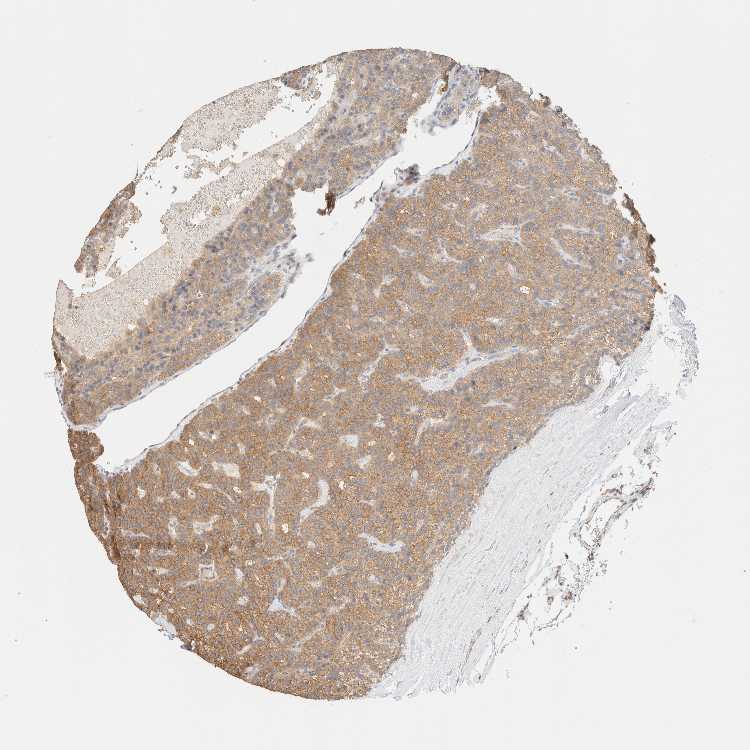 Antibody staining in the annotated cell types in the current human tissue is reported as not detected, low, medium, or high, based on conventional immunohistochemistry profiling in selected tissues. This score is based on the combination of the staining intensity and fraction of stained cells.