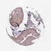 Antibody staining in the annotated cell types in the current human tissue is reported as not detected, low, medium, or high, based on conventional immunohistochemistry profiling in selected tissues. This score is based on the combination of the staining intensity and fraction of stained cells.