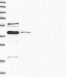 A Western blot analysis is performed on a panel of human tissues and cell lines to evaluate antibody specificity. For antibodies with unreliable result a revalidation using an over-expression lysate is performed.