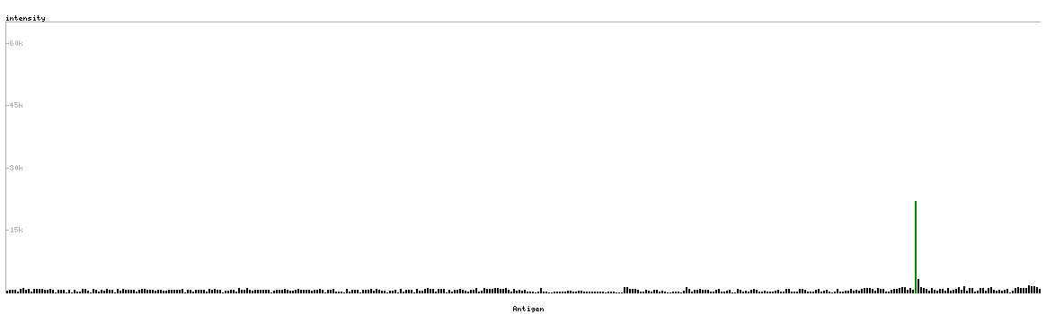 The curve in blue displays the predicted antigenicity i.e. the tendency for different regions of the protein to generate an immune response, with peak regions being predicted to be more antigenic.The curve shows average values based on a sliding window approach using an in-house propensity scale. (read more).
