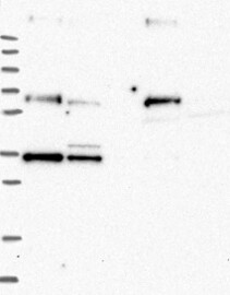 A Western blot analysis is performed on a panel of human tissues and cell lines to evaluate antibody specificity. For antibodies with unreliable result a revalidation using an over-expression lysate is performed.