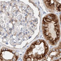 Enhanced validation is performed using either siRNA knockdown, tagged GFP cell lines or independent antibodies. For the siRNA validation the decrease in antibody-based staining intensity upon target protein downregulation is evaluated. For the GFP validation the signal overlap between the antibody staining and the GFP-tagged protein is evaluated. For the independent antibodies validation the evaluation is based on comparison of the staining of two (or more) independent antibodies directed towards independent epitopes on the protein.