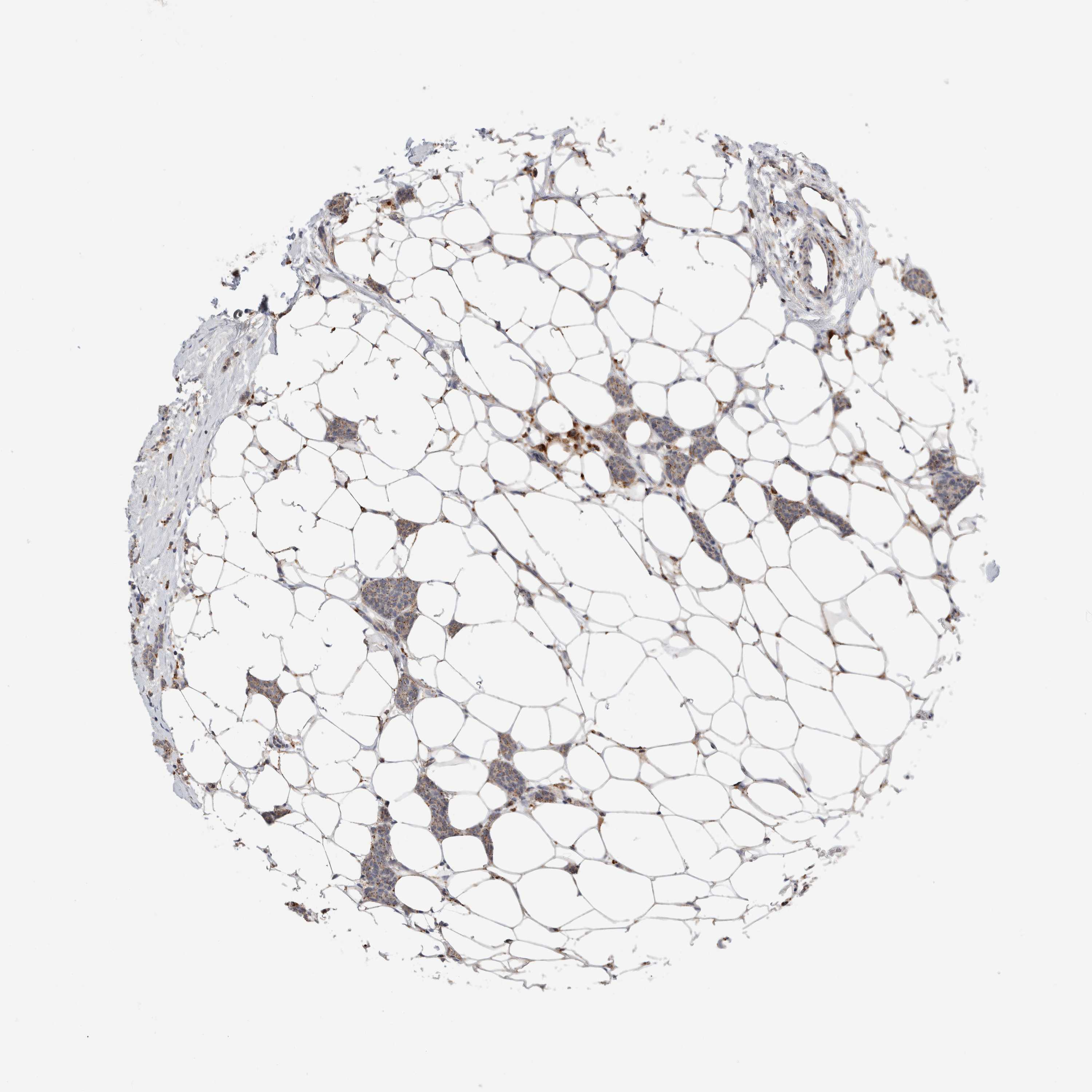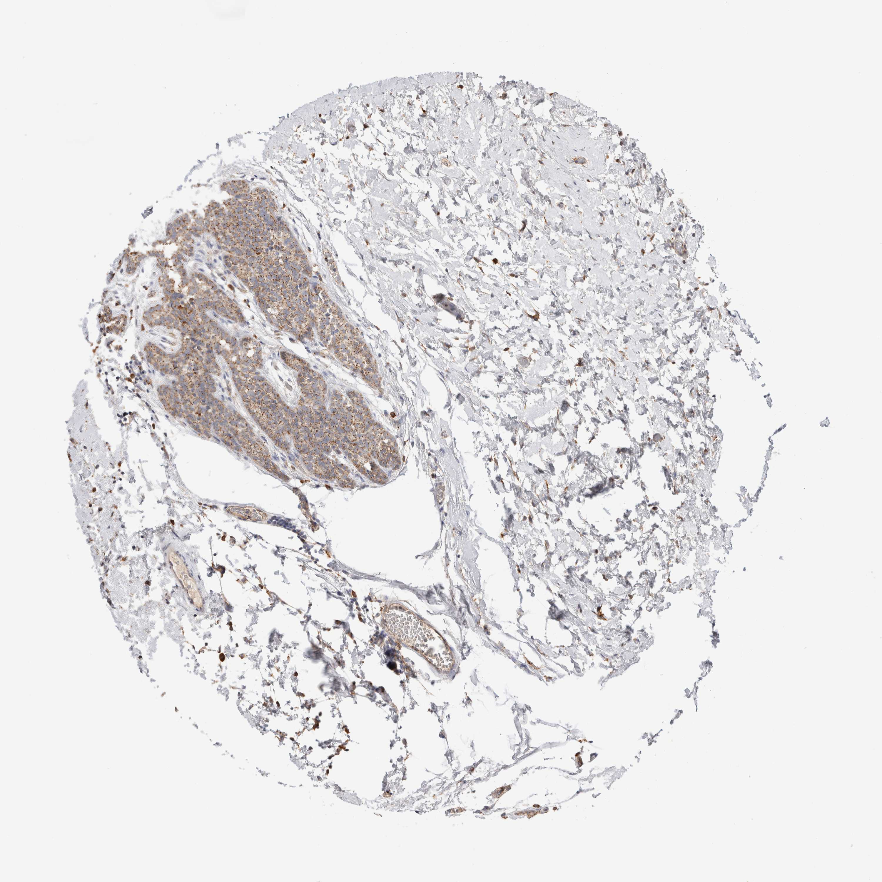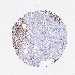 Antibody staining in the annotated cell types in the current human tissue is reported as not detected, low, medium, or high, based on conventional immunohistochemistry profiling in selected tissues. This score is based on the combination of the staining intensity and fraction of stained cells.