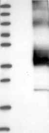 Band of predicted size in kDa (+/-20%) with additional bands present.