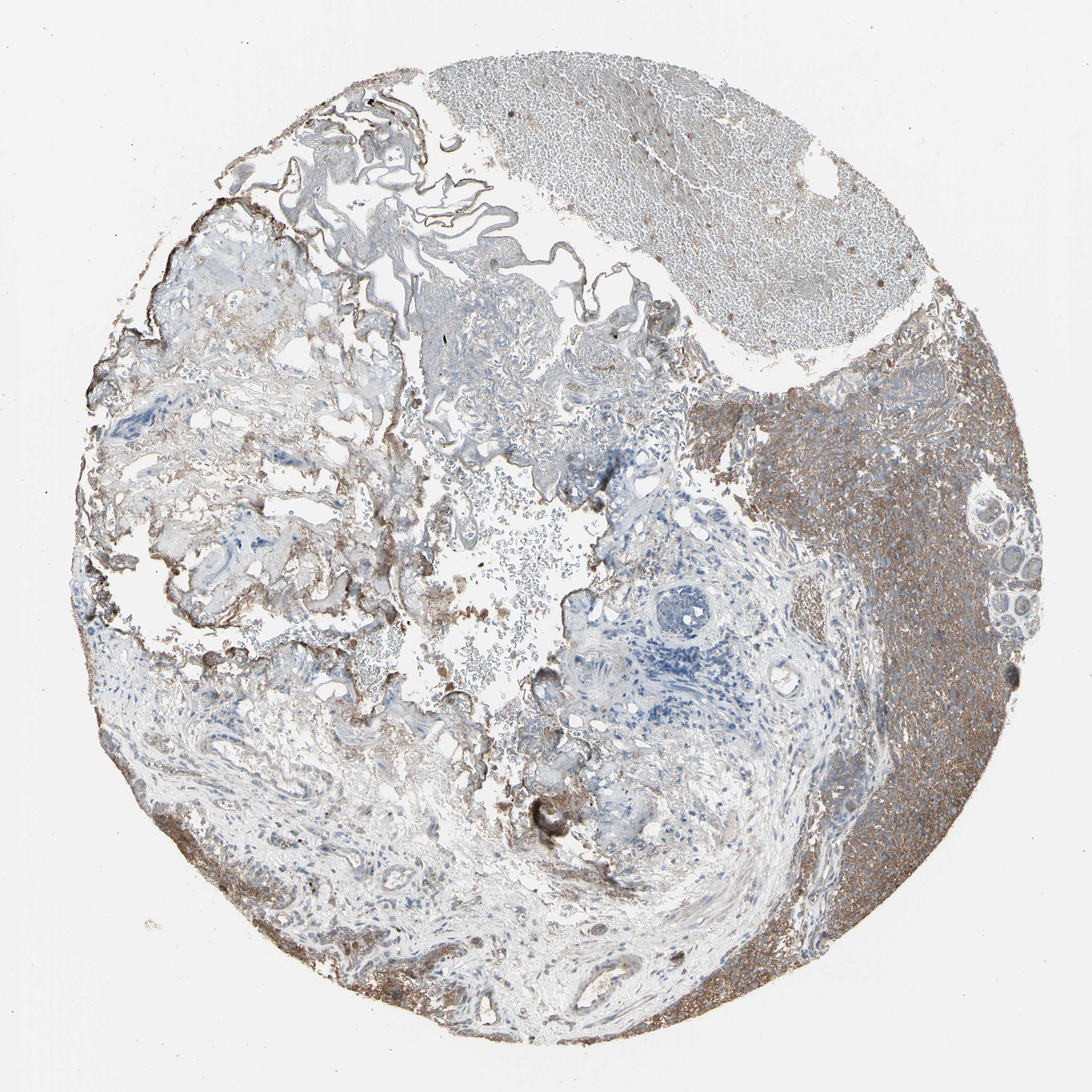 Antibody staining in the annotated cell types in the current human tissue is reported as not detected, low, medium, or high, based on conventional immunohistochemistry profiling in selected tissues. This score is based on the combination of the staining intensity and fraction of stained cells.
