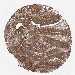 Antibody staining in the annotated cell types in the current human tissue is reported as not detected, low, medium, or high, based on conventional immunohistochemistry profiling in selected tissues. This score is based on the combination of the staining intensity and fraction of stained cells.