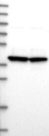 Antibody band pattern is confirmed by antibody HPA048479. Analysis performed using a standard panel of samples.