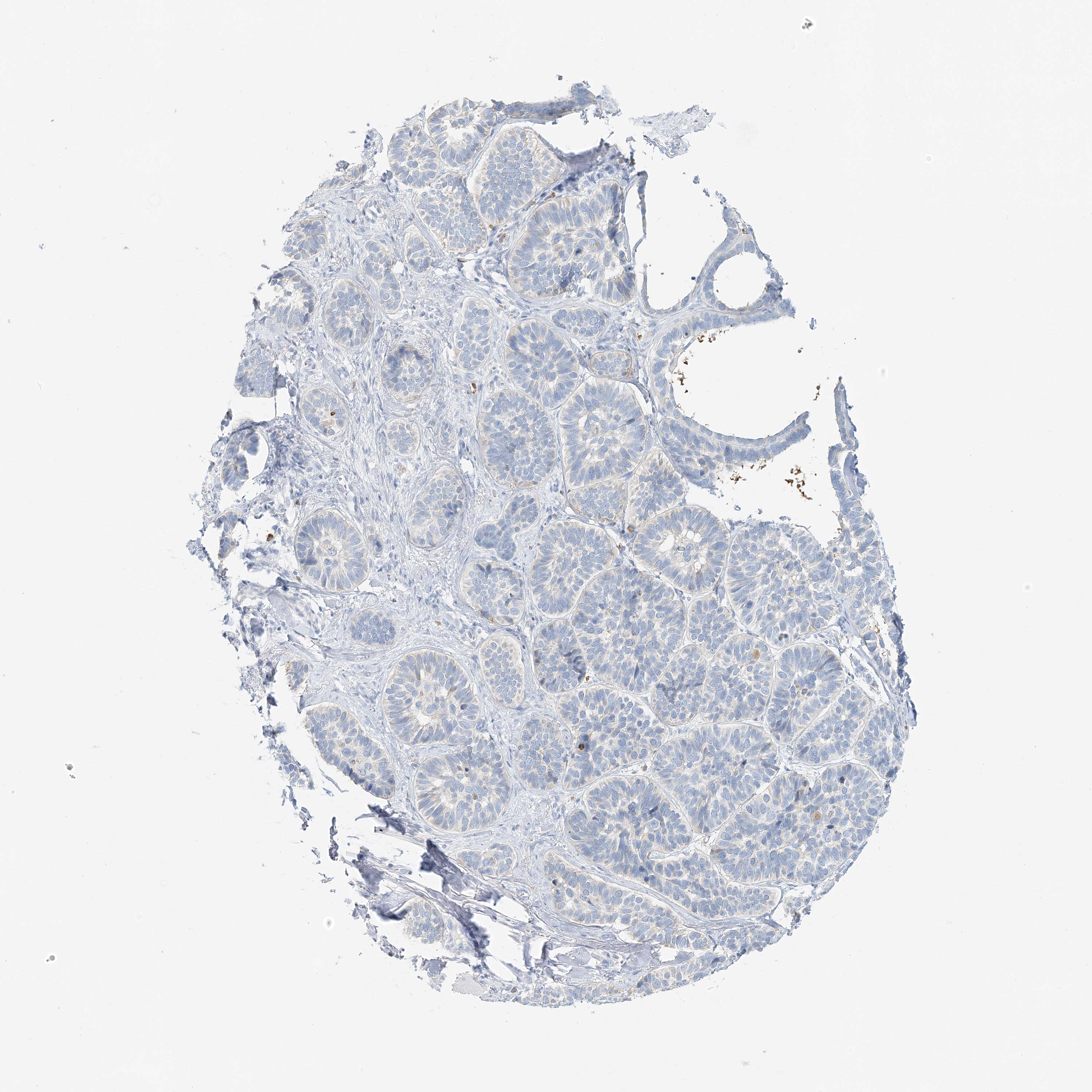 Antibody staining in the annotated cell types in the current human tissue is reported as not detected, low, medium, or high, based on conventional immunohistochemistry profiling in selected tissues. This score is based on the combination of the staining intensity and fraction of stained cells.