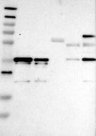 A Western blot analysis is performed on a panel of human tissues and cell lines to evaluate antibody specificity. For antibodies with unreliable result a revalidation using an over-expression lysate is performed.