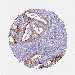 Antibody staining in the annotated cell types in the current human tissue is reported as not detected, low, medium, or high, based on conventional immunohistochemistry profiling in selected tissues. This score is based on the combination of the staining intensity and fraction of stained cells.