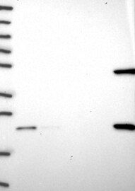 A Western blot analysis is performed on a panel of human tissues and cell lines to evaluate antibody specificity. For antibodies with unreliable result a revalidation using an over-expression lysate is performed.