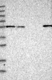 A Western blot analysis is performed on a panel of human tissues and cell lines to evaluate antibody specificity. For antibodies with unreliable result a revalidation using an over-expression lysate is performed.