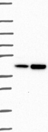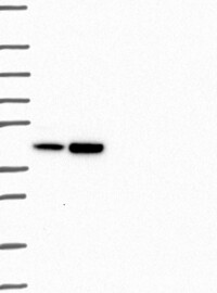 A Western blot analysis is performed on a panel of human tissues and cell lines to evaluate antibody specificity. For antibodies with unreliable result a revalidation using an over-expression lysate is performed.