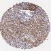 Antibody staining in the annotated cell types in the current human tissue is reported as not detected, low, medium, or high, based on conventional immunohistochemistry profiling in selected tissues. This score is based on the combination of the staining intensity and fraction of stained cells.