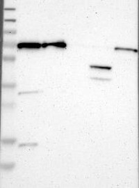 A Western blot analysis is performed on a panel of human tissues and cell lines to evaluate antibody specificity. For antibodies with unreliable result a revalidation using an over-expression lysate is performed.