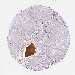 Antibody staining in the annotated cell types in the current human tissue is reported as not detected, low, medium, or high, based on conventional immunohistochemistry profiling in selected tissues. This score is based on the combination of the staining intensity and fraction of stained cells.