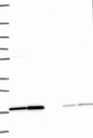 A Western blot analysis is performed on a panel of human tissues and cell lines to evaluate antibody specificity. For antibodies with unreliable result a revalidation using an over-expression lysate is performed.