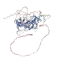 Clinical and population-based amino acid variants based on data from the Ensembl variation database and AlphaMissense (AM) predictions can be highlighted using the sliders to the right of the structure. These can also be used to colour the entire structure by residue index or make the structure autorotate.The structures are displayed using the NGL Viewer and can also be zoomed-in and rotated manually.