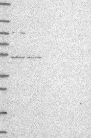 A Western blot analysis is performed on a panel of human tissues and cell lines to evaluate antibody specificity. For antibodies with unreliable result a revalidation using an over-expression lysate is performed.
