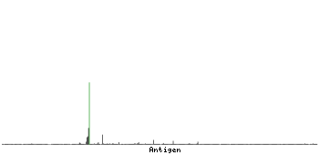 At the top of the view, the position of the antigen (identified by the corresponding HPA identifier) is shown as a green bar. A yellow triangle on the bar indicates a <100% sequence identity to the protein target.